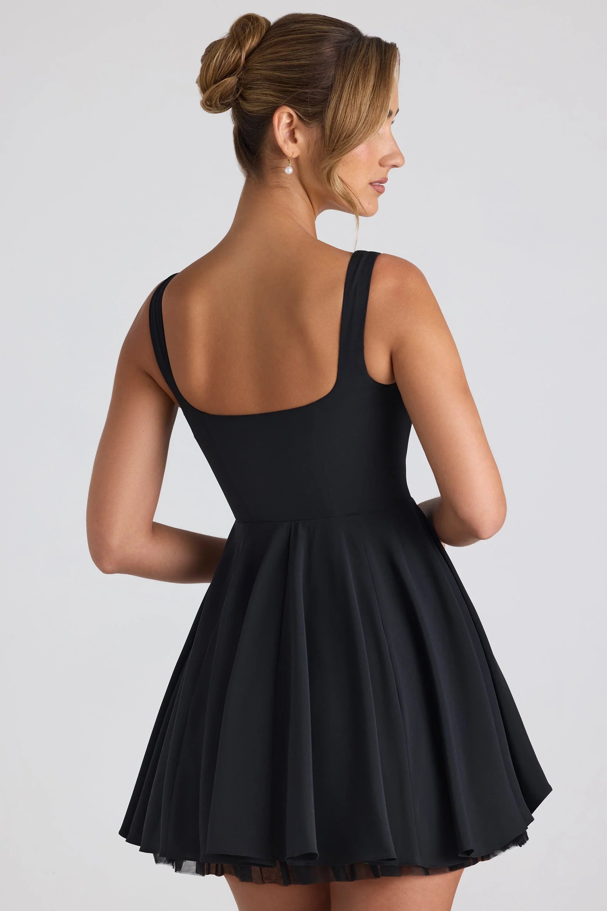 Designed with spontaneous daytime plans in mind: think al fresco lunch dates or brunch with the girls. Crafted from lightweight georgette that perfectly enhances your curves, the Nanisca micro mini dress is cut to a sweet A-line silhouette with cut-out detailing and adjustable ties at the bodice. It’s completed with a gathered tulle underlay at the hem.