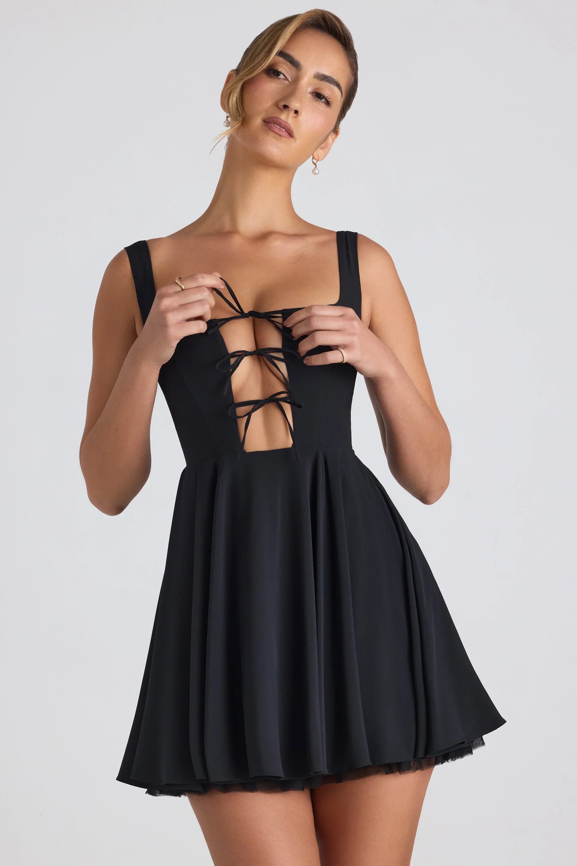 Cut-out detailing with adjustable ties at front